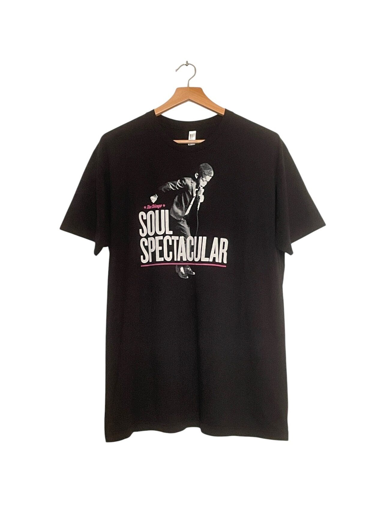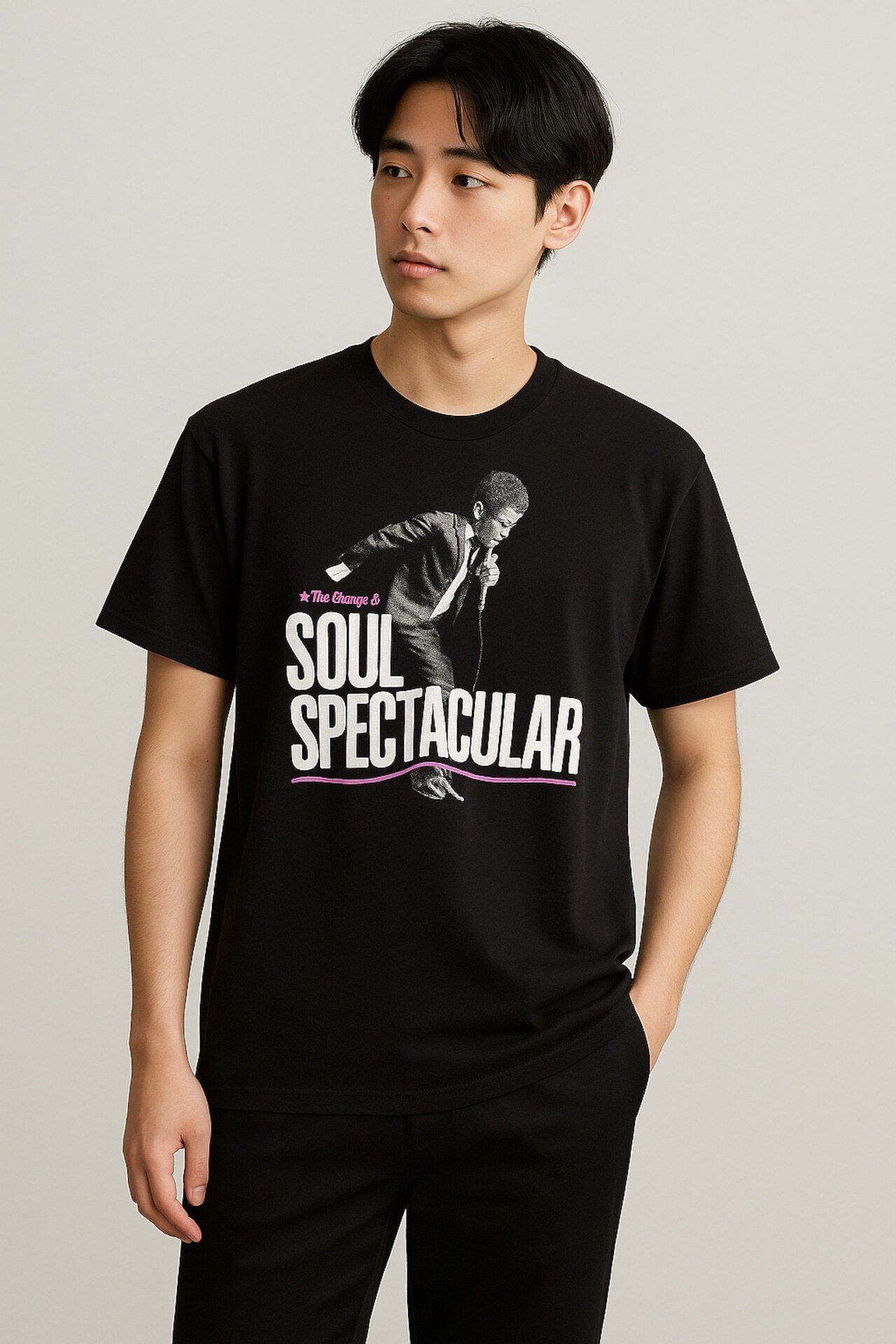 ソウルフルなアーティストのグラフィックが印象的な、存在感抜群の黒Tシャツ。