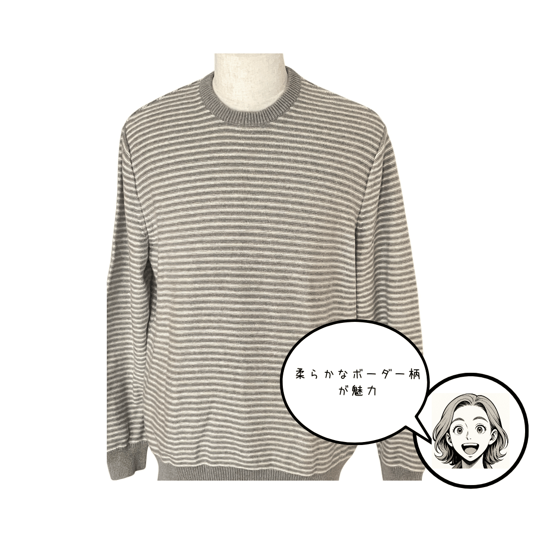 落ち着いたトーンのボーダー柄が特徴的なニットスウェット。