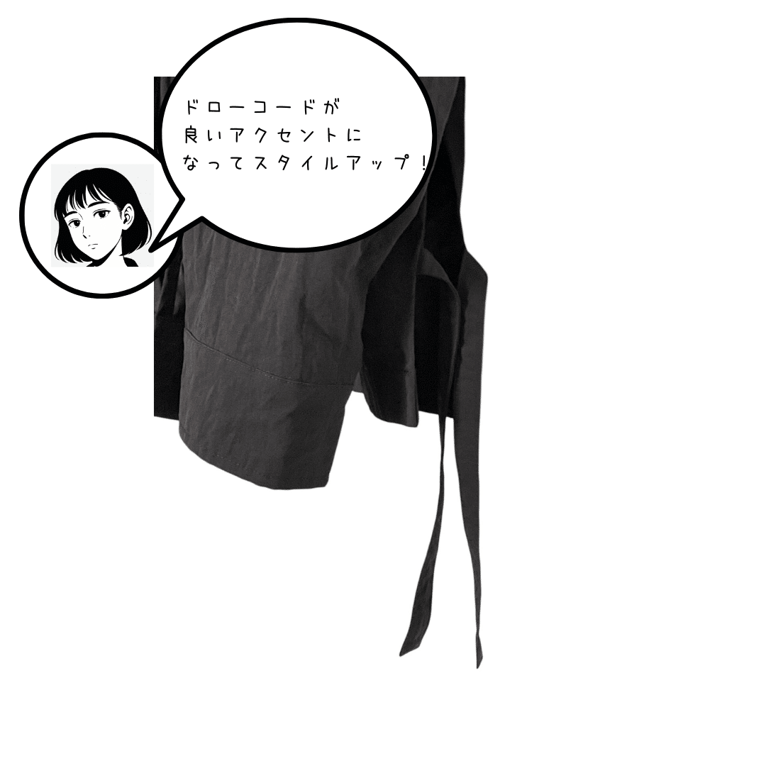 ポイント:ドローコードがアクセントになり、シルエット調整も可能。