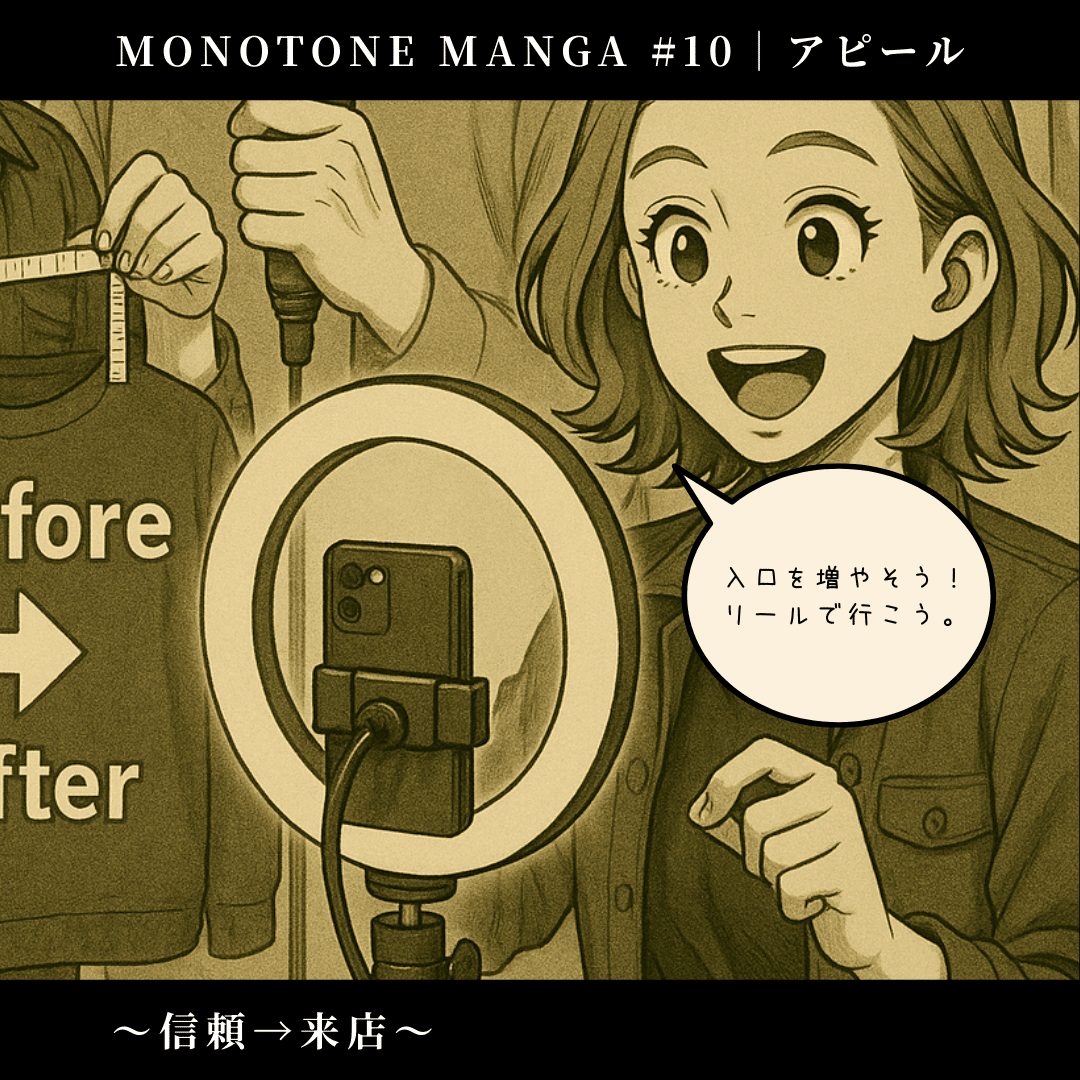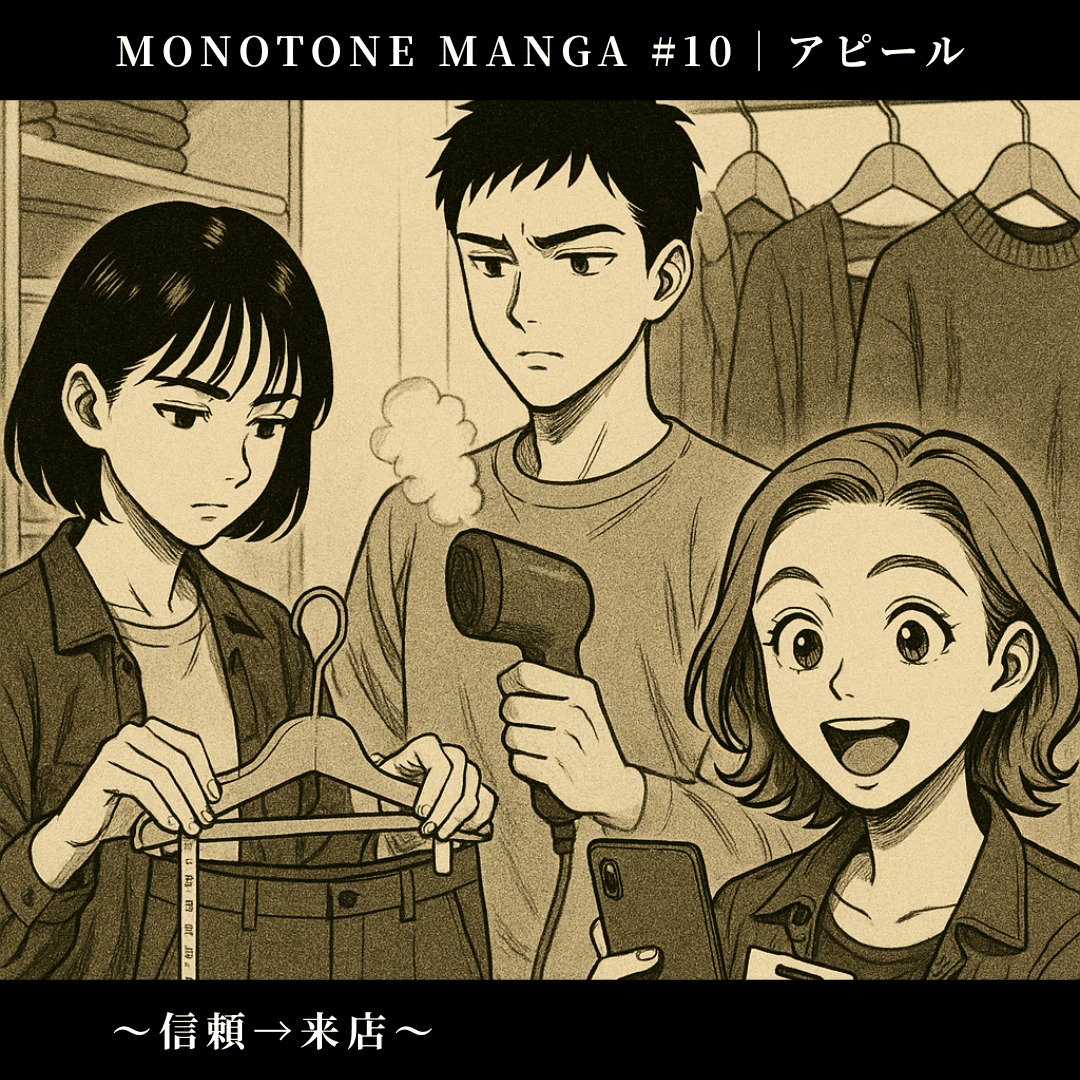 モノトーン古着専門店「MONO VINTAGE」の開店ストーリーを、マンガ形式でお届けします。
