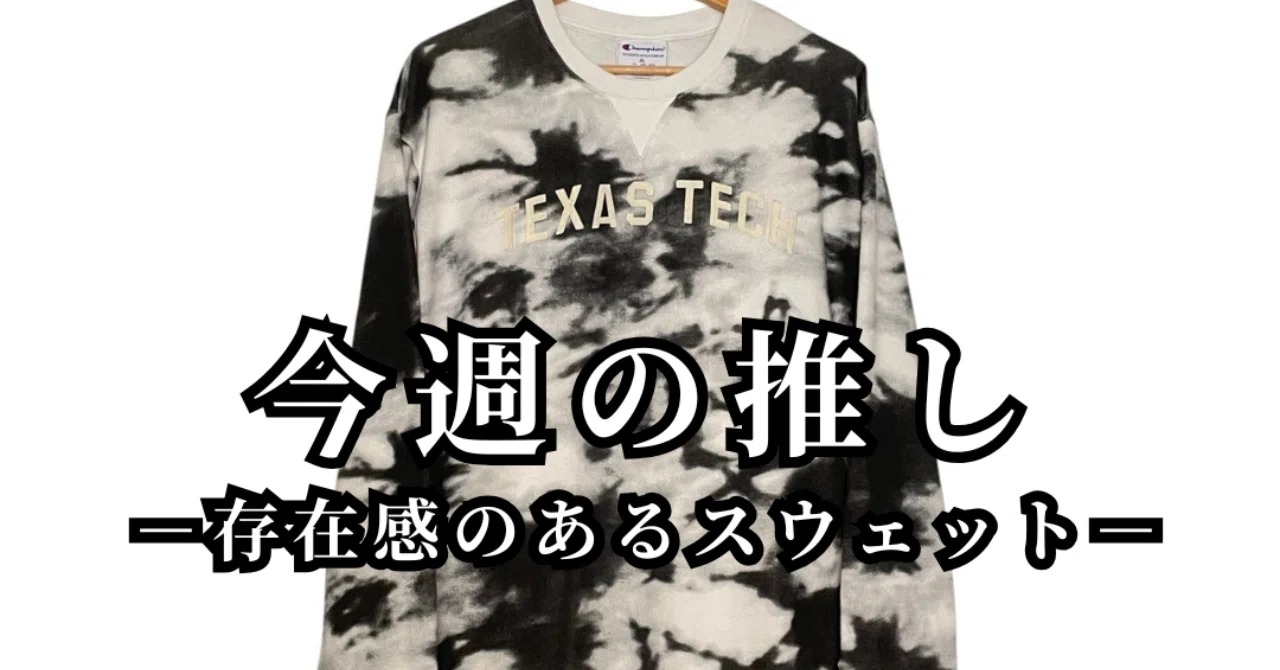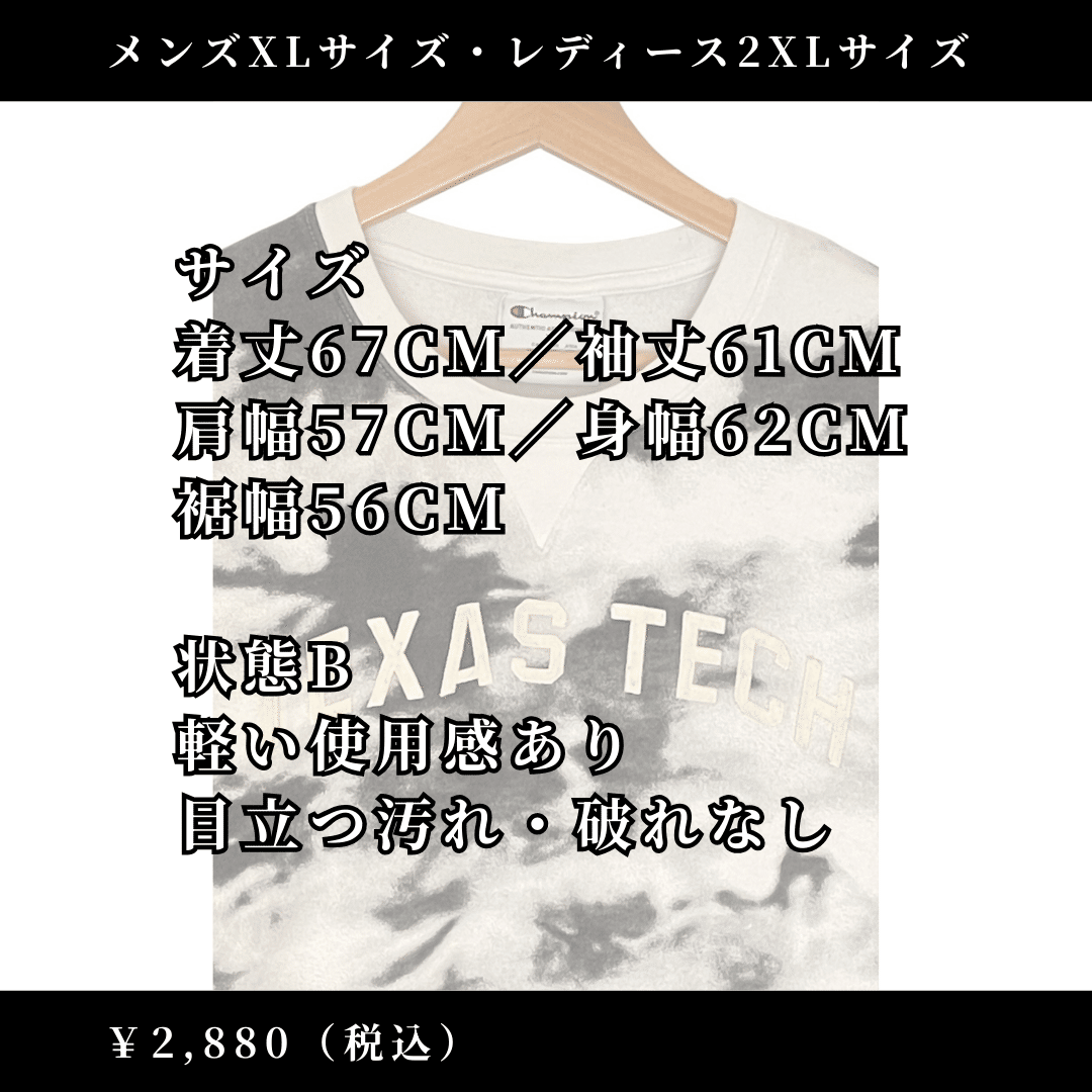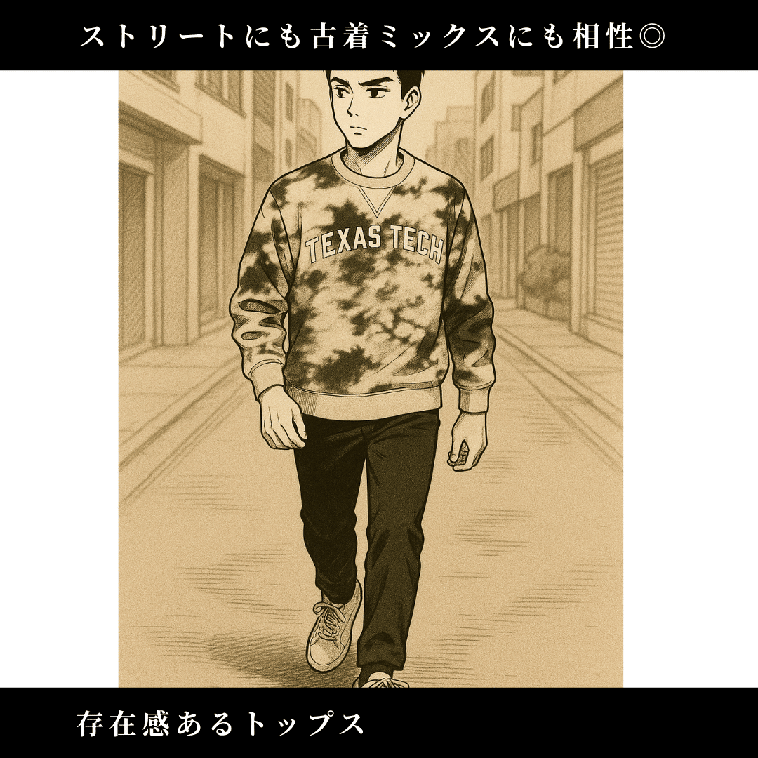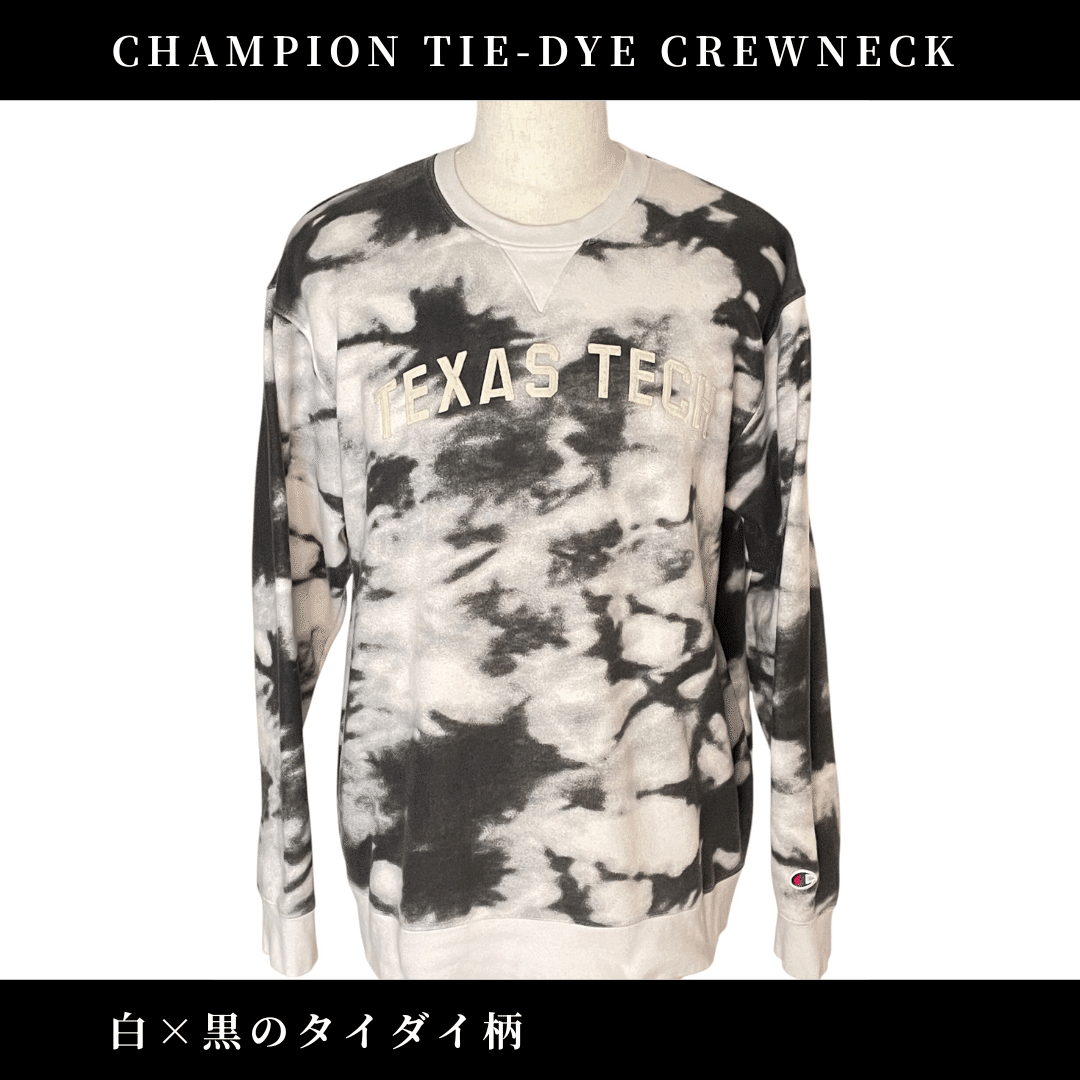 タイプ:クルーネックスウェット(白×黒タイダイ柄/胸ロゴ「TEXAS TECH」)