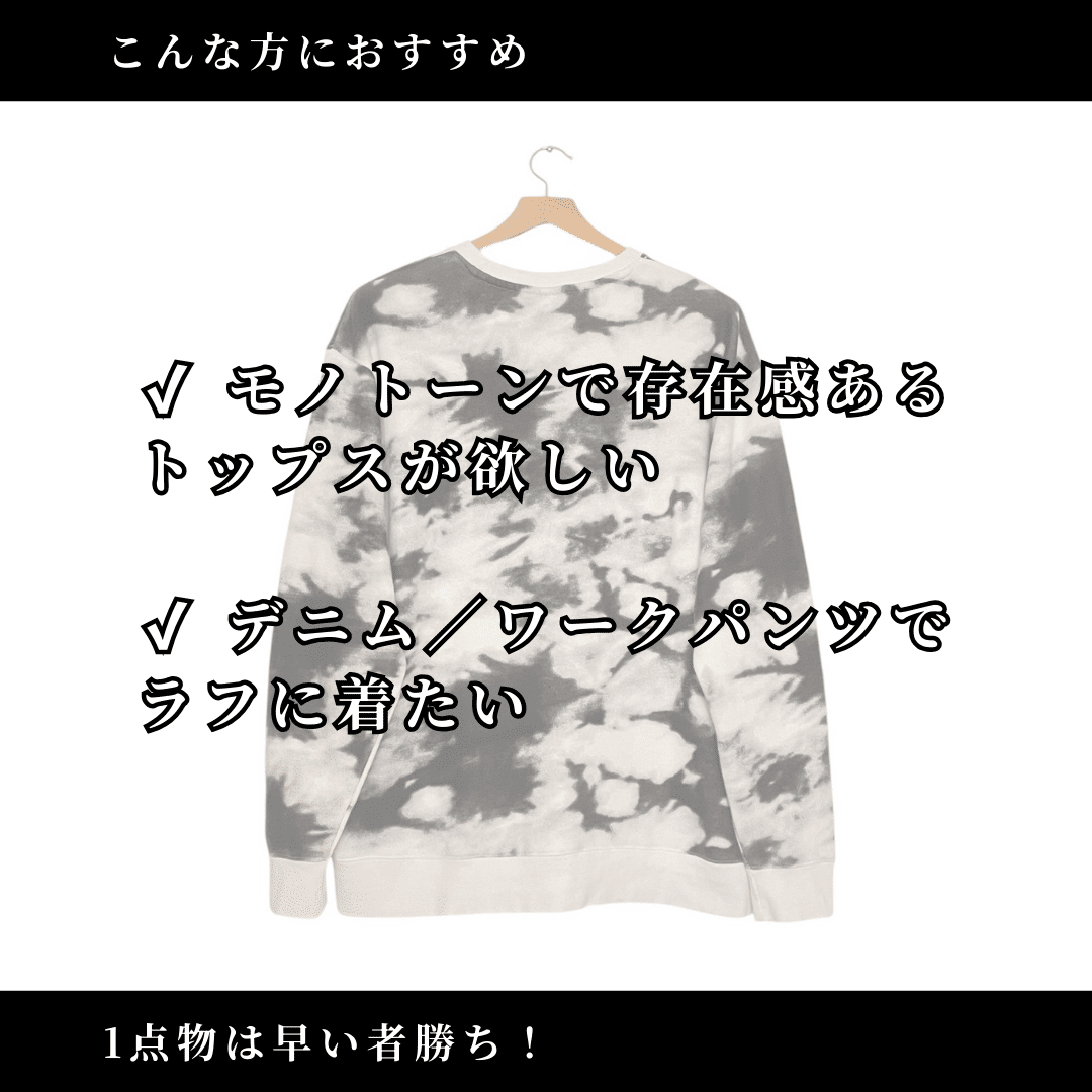 白×黒のタイダイで、モノトーンでも主役になる1枚。