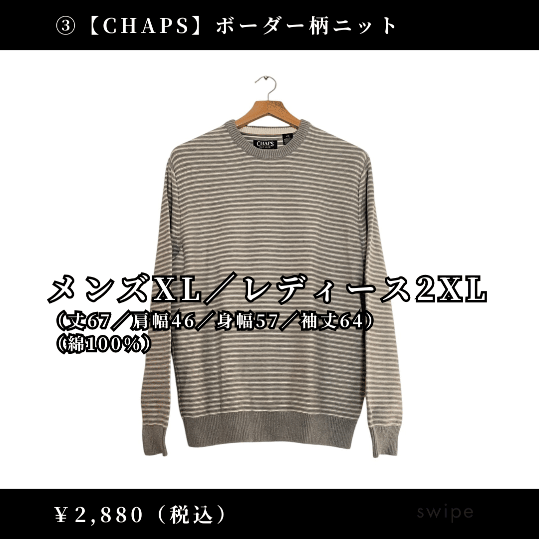 ③ 【CHAPS】 ボーダー柄ニット|柔らかコットンで着心地◎
