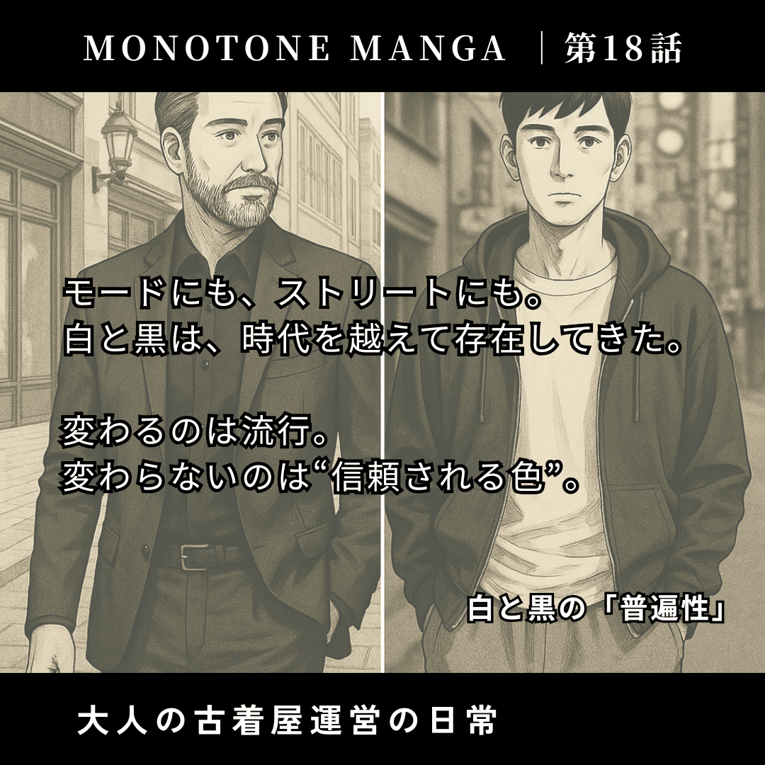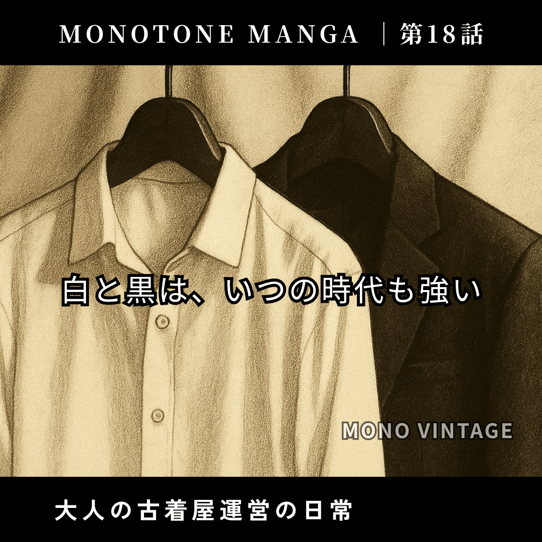モノトーン古着専門店「MONO VINTAGE」の開店ストーリーを、マンガ形式でお届けします。