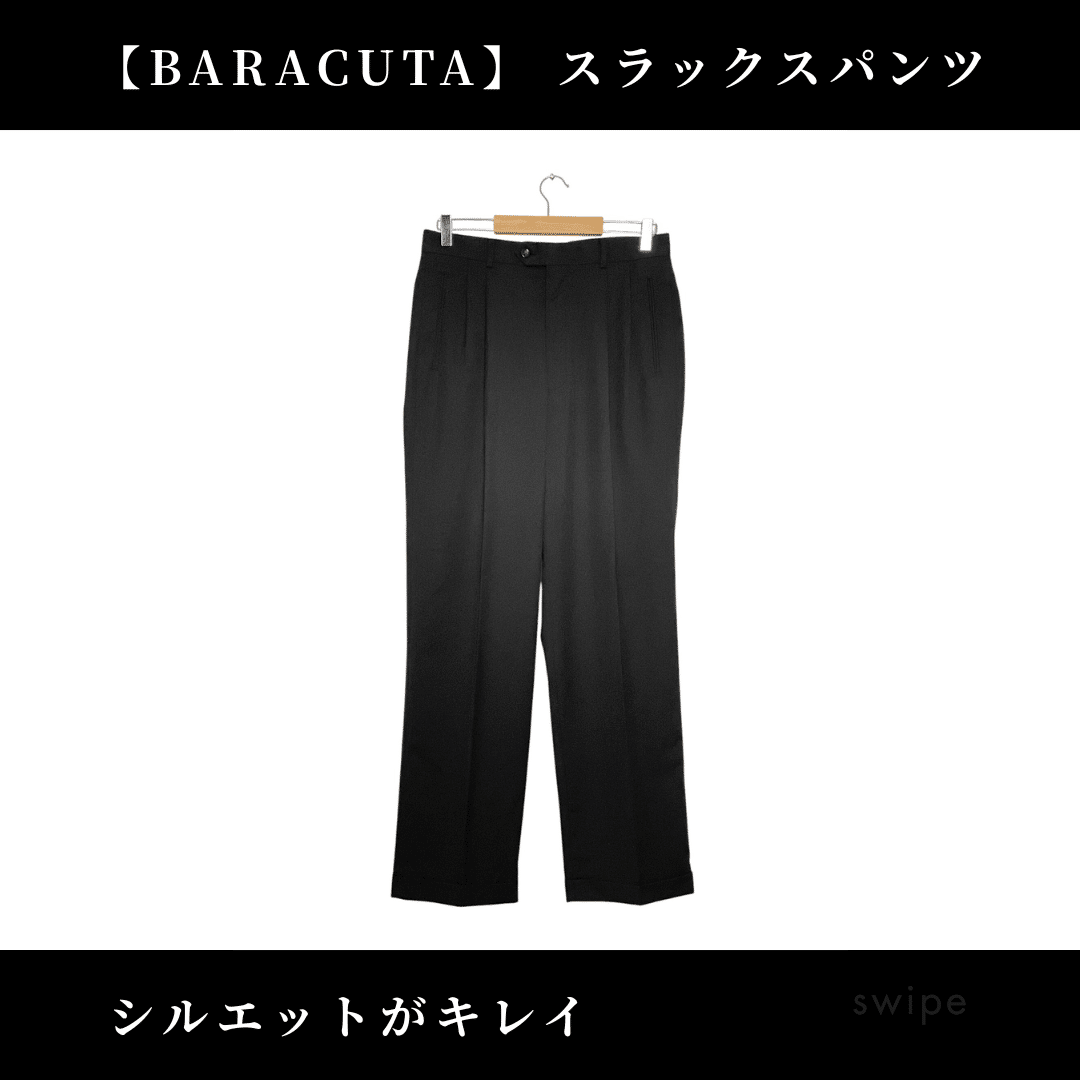 【BARACUTA(バラクータ)】のスラックスパンツは無駄を削ぎ落としたミニマルなデザインと、落ち感のあるシルエットが魅力です。