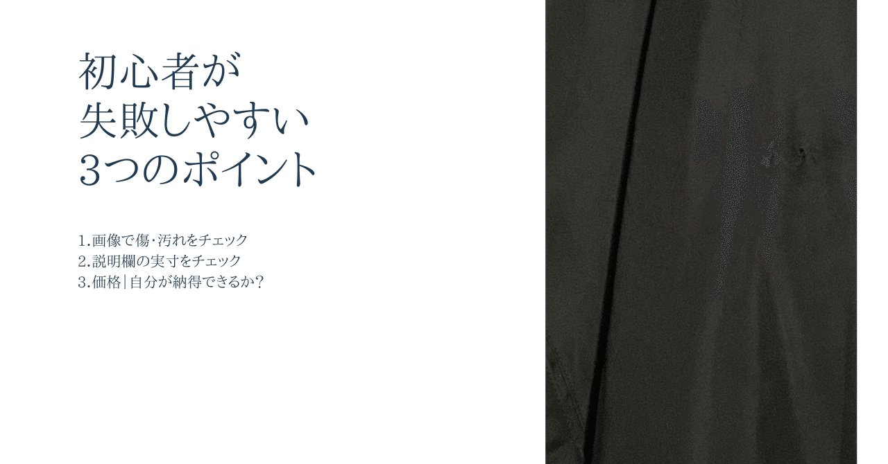 この3つを意識するだけで古着購入の失敗を減らすことができます。