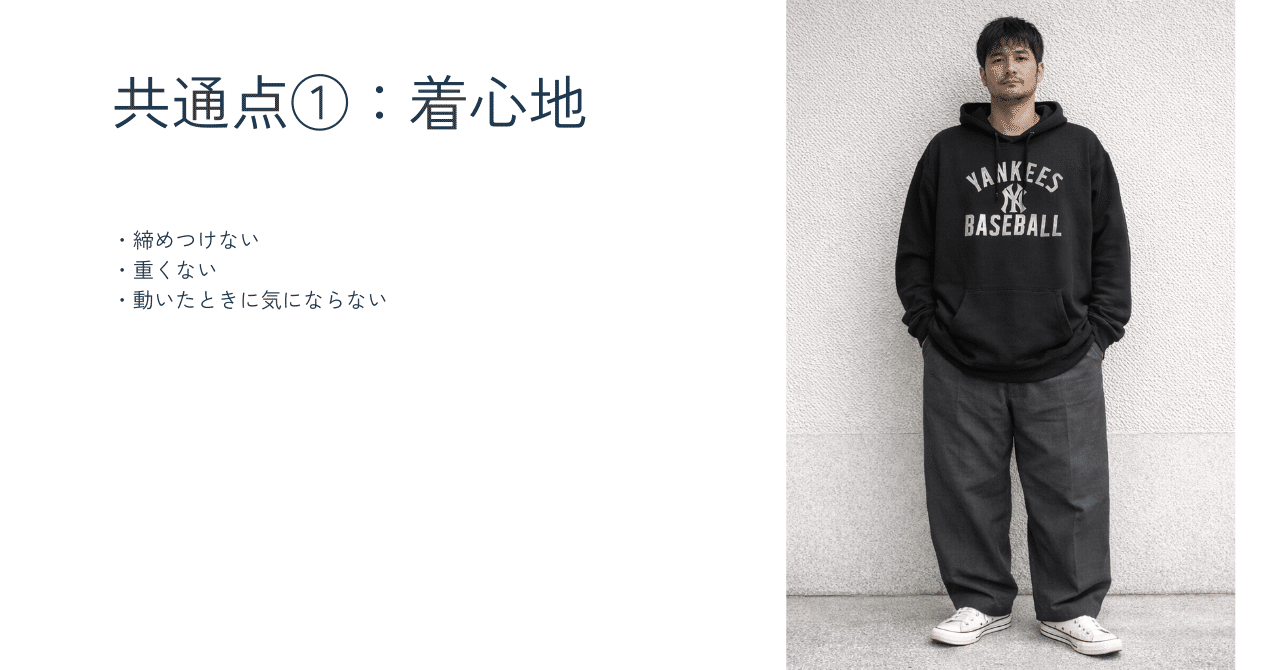 気づくと着ている服の多くは着た瞬間にストレスがありません。