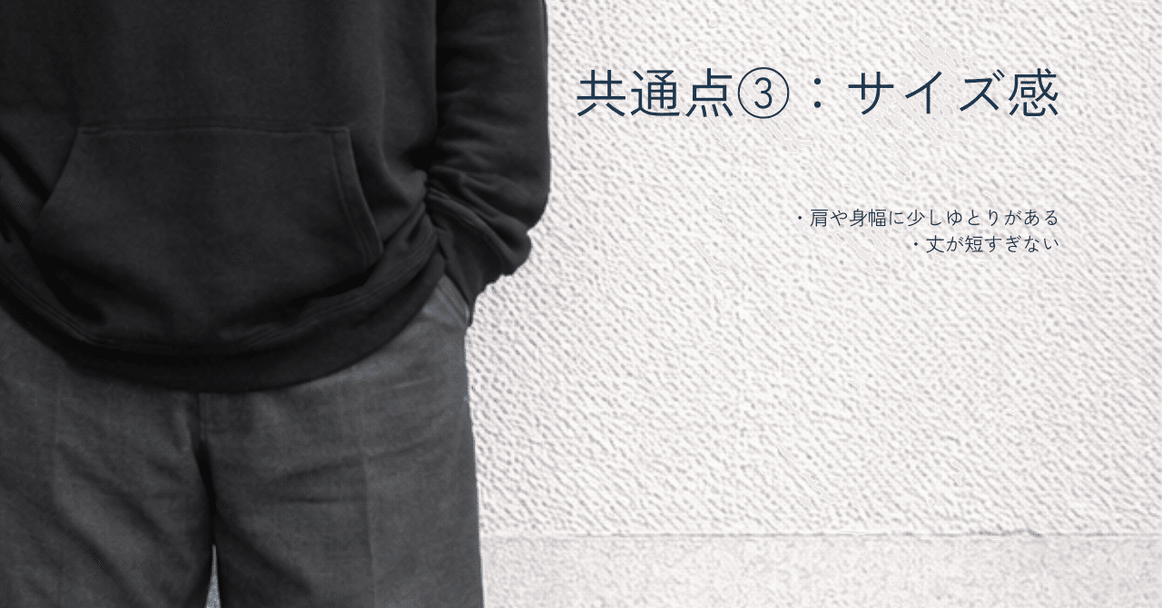 モノトーン古着はデザインが控えめな分、サイズ感がそのまま印象につながります。