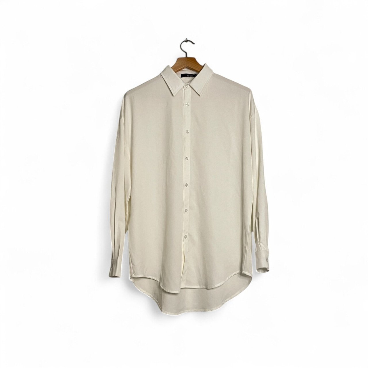 ゆったりとしたシルエットが特徴の長袖シャツです。