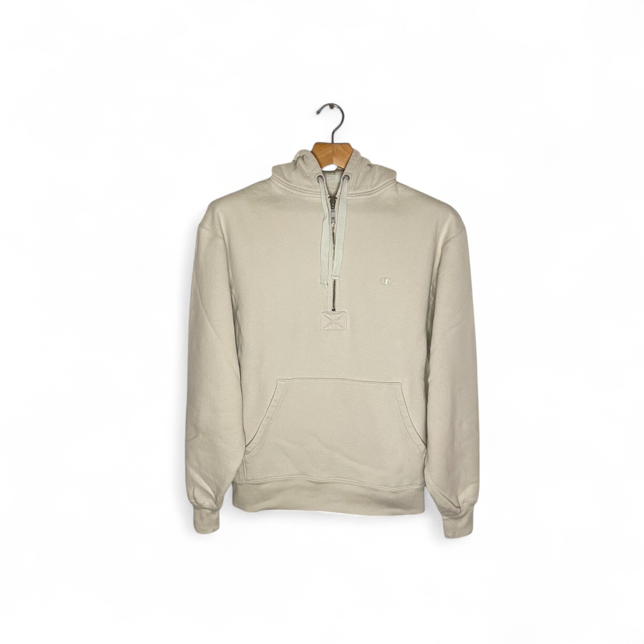 柔らかな風合いとナチュラルな色味が魅力の、Champion(チャンピオン)のアイボリージップアップパーカーです。