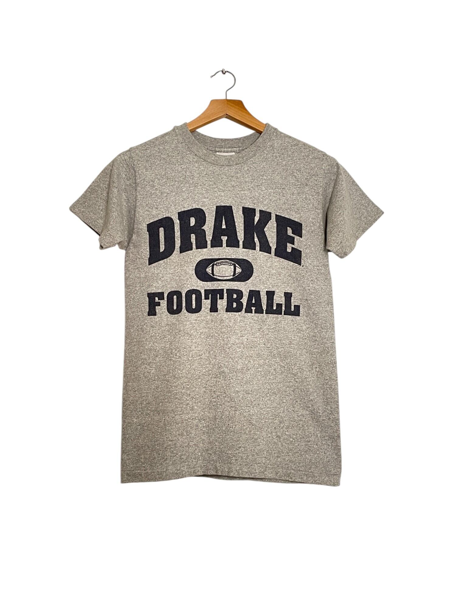グレーボディに「DRAKE FOOTBALL」のロゴが映える、王道アメカジTシャツです。