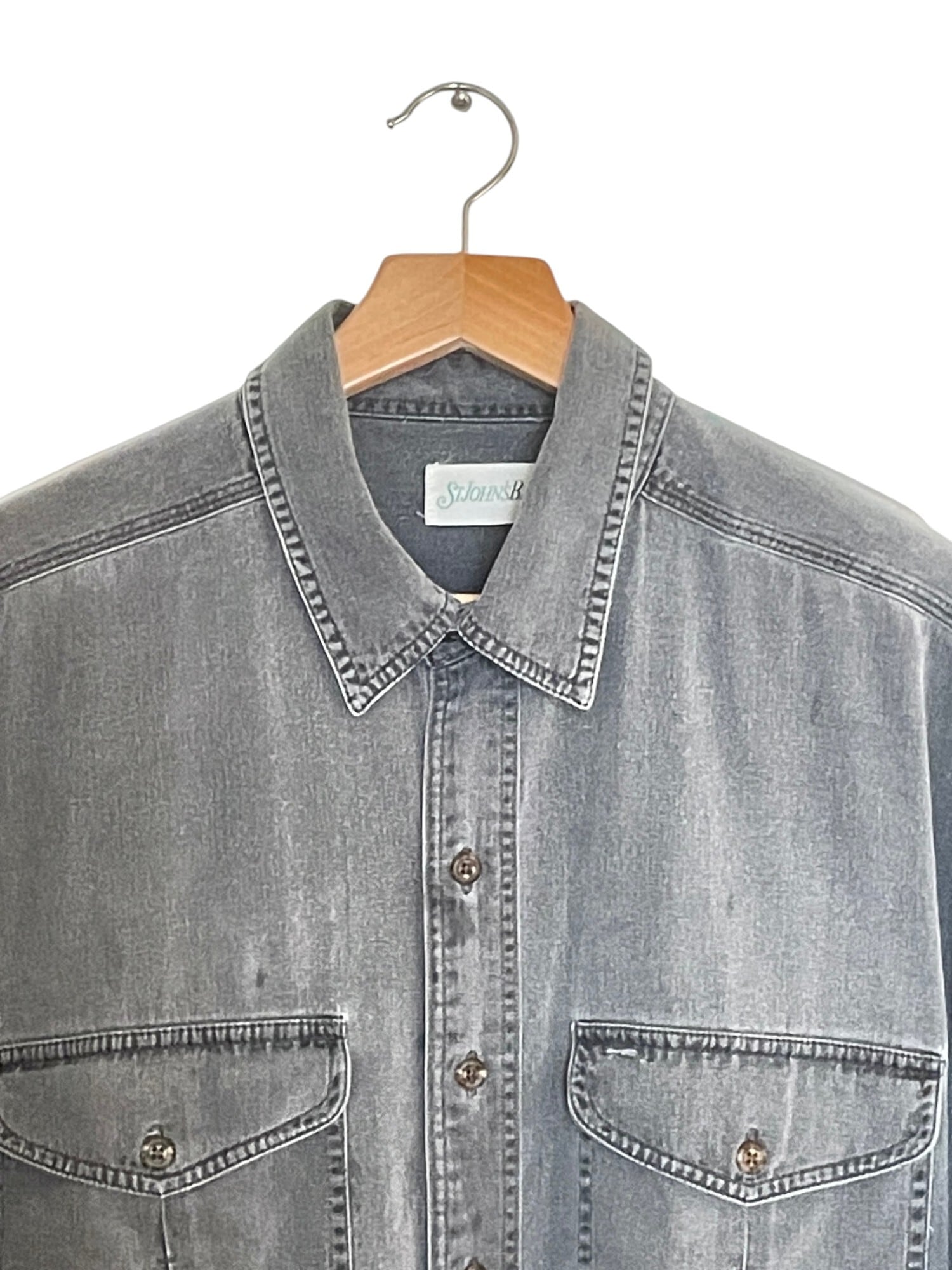 90s色落ちデニムシャツ|ST.JOHN’S BAY(セントジョンズベイ)|メンズ2XLサイズ相当|グレー(灰)