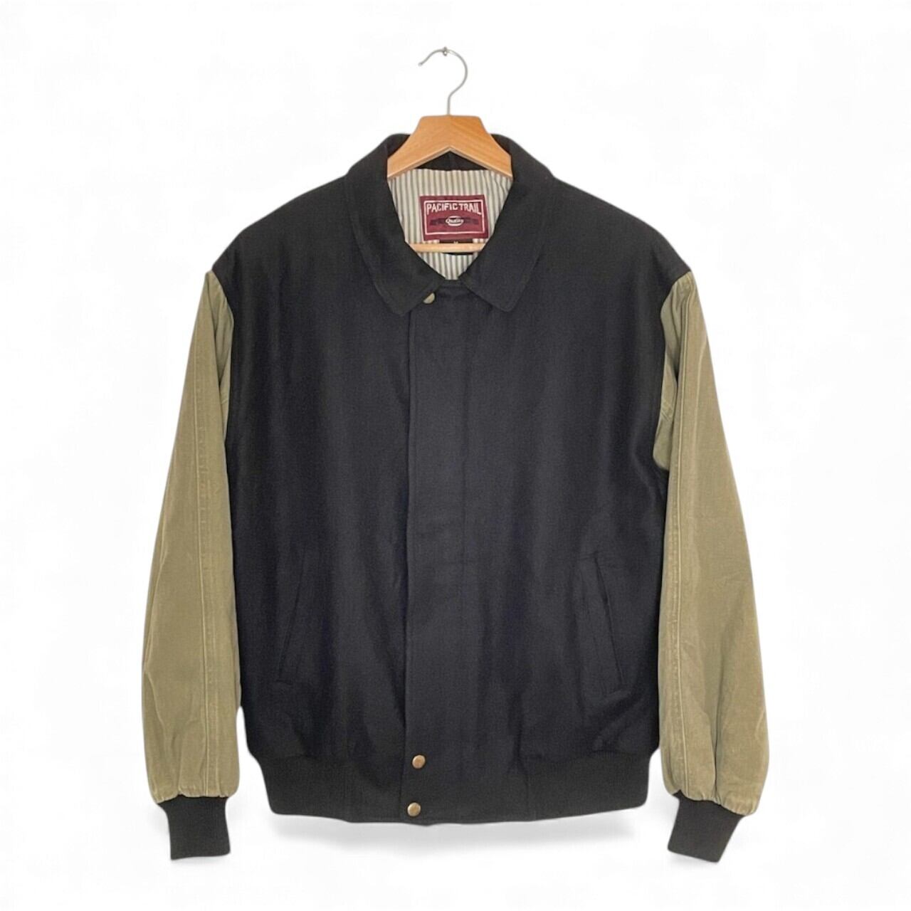 スタジャン風ジャケット|PACIFIC TRAIL|ブラック×カーキ|メンズLサイズ相当