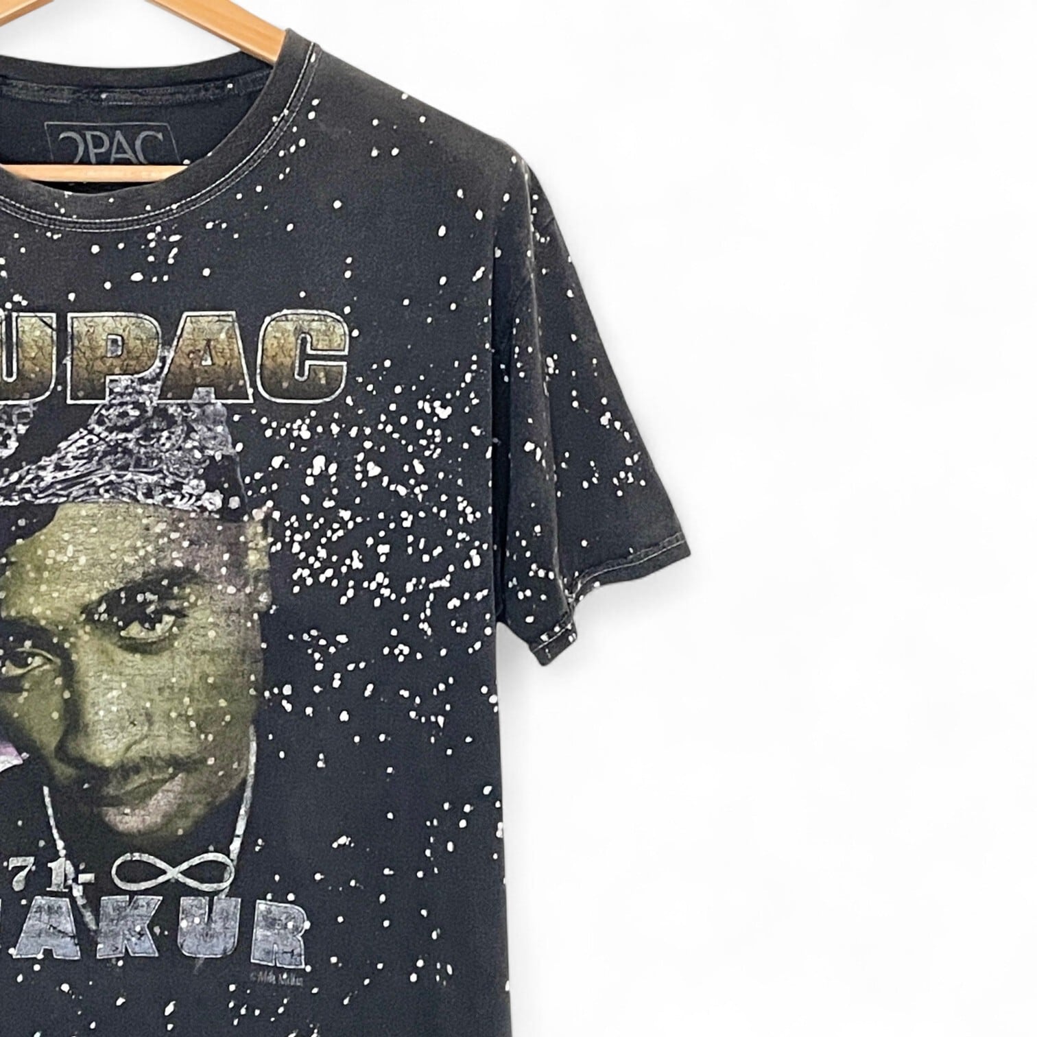 色落ち2PACTシャツ|2PAC(トゥーパック)|メンズLサイズ相当|ブラック(黒)