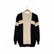 ブラック×ベージュの落ち着いた配色が、大人らしい上品さを演出するニットです。