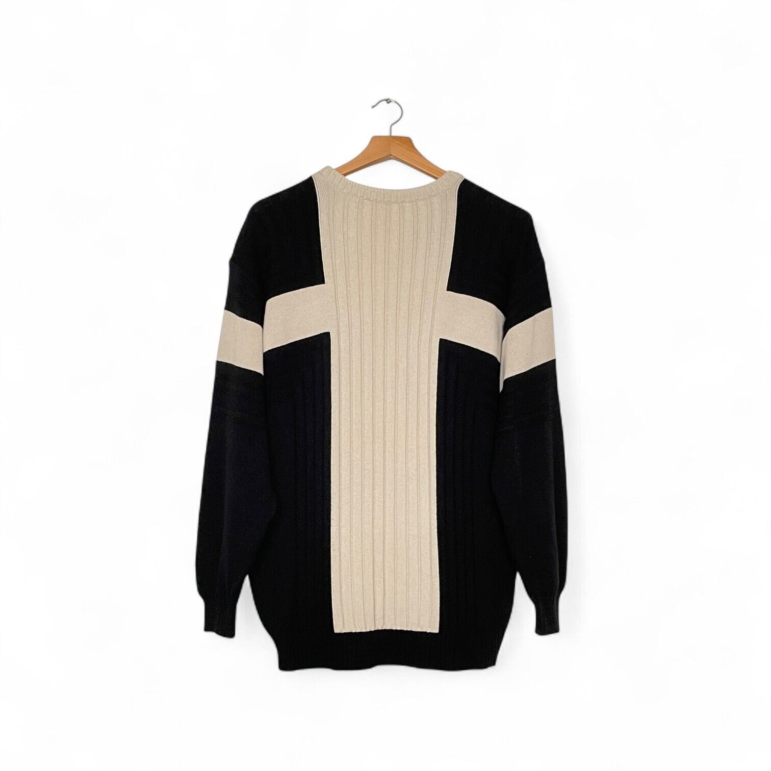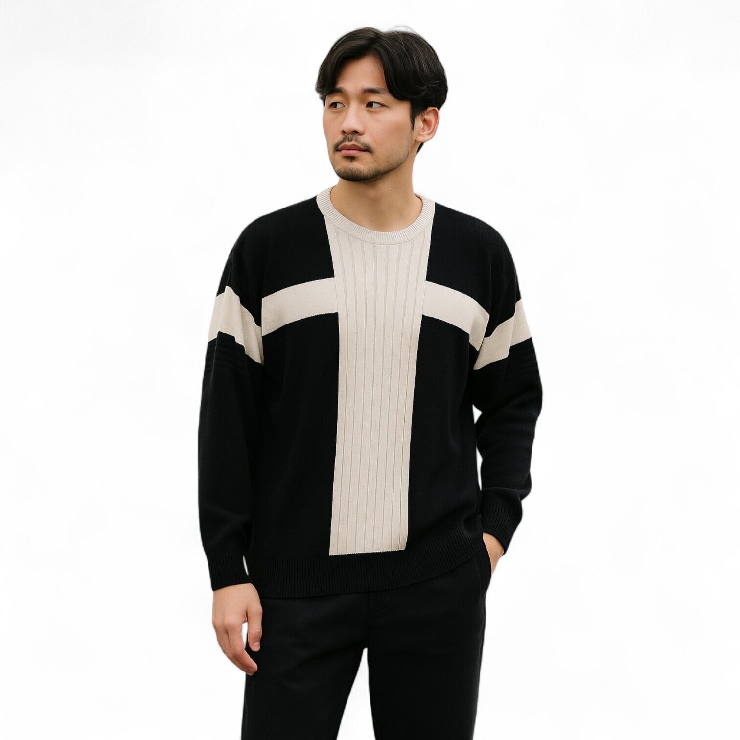 落ち着いた配色の上品ニット|CARLO COLUCCI(カルロ コルッチ)|メンズLサイズ相当|レディース対応|ブラック(黒)