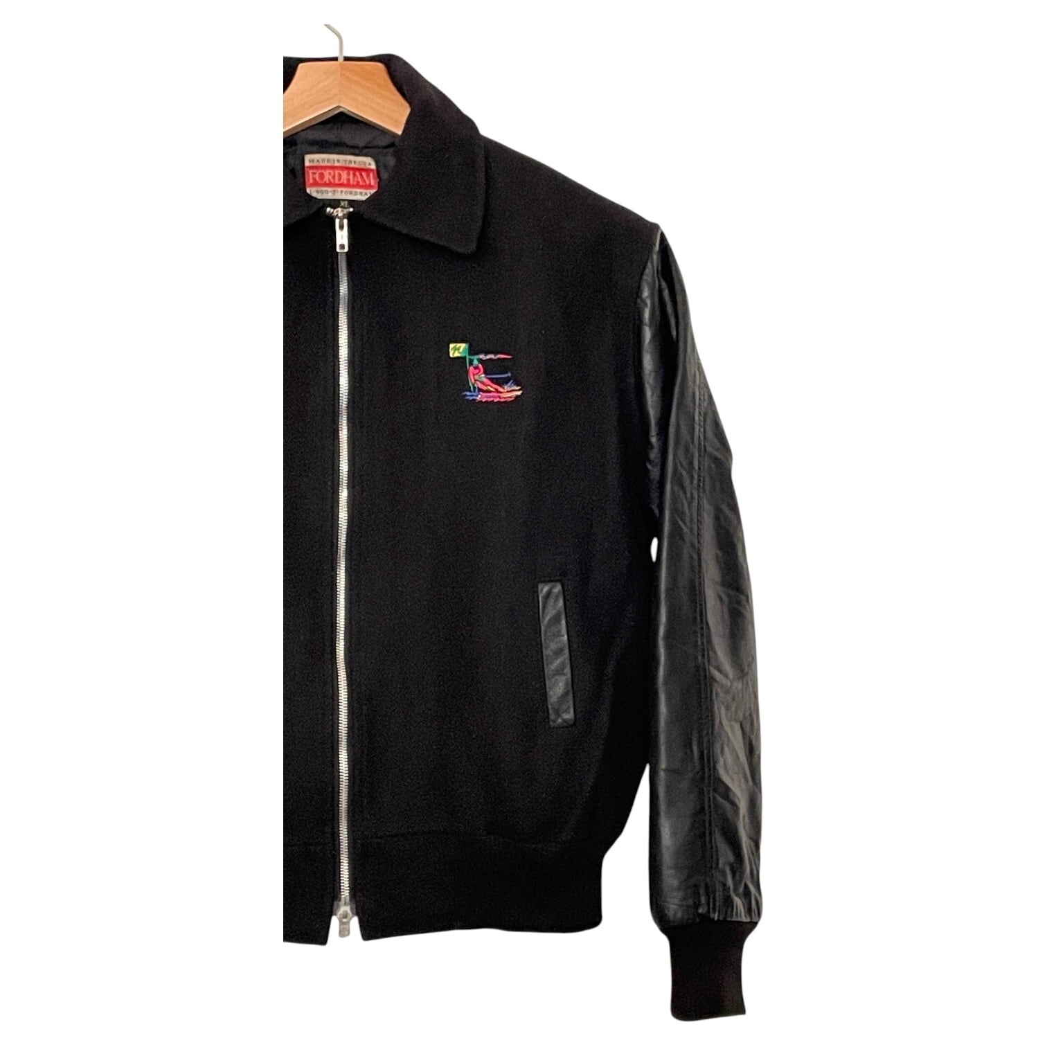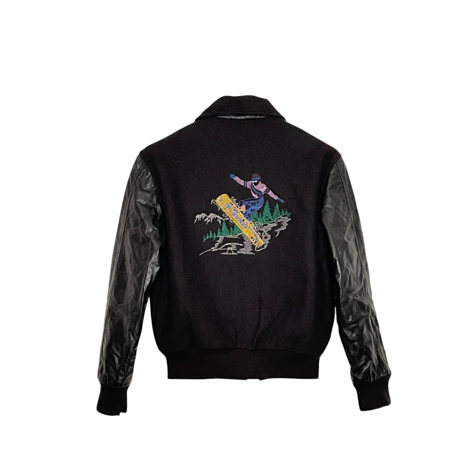 刺繍が印象的なスタジアムジャケット。