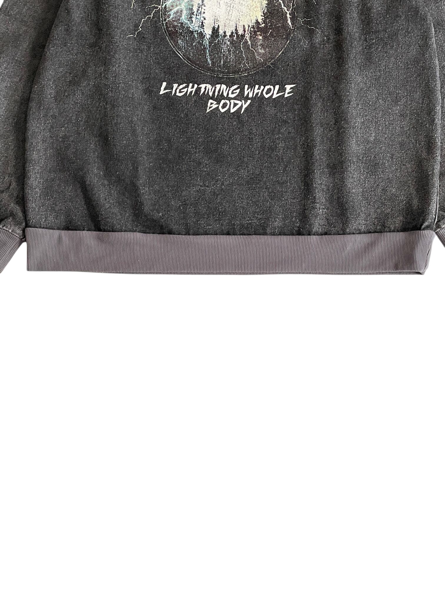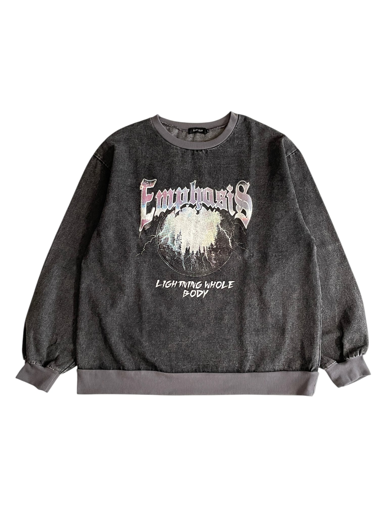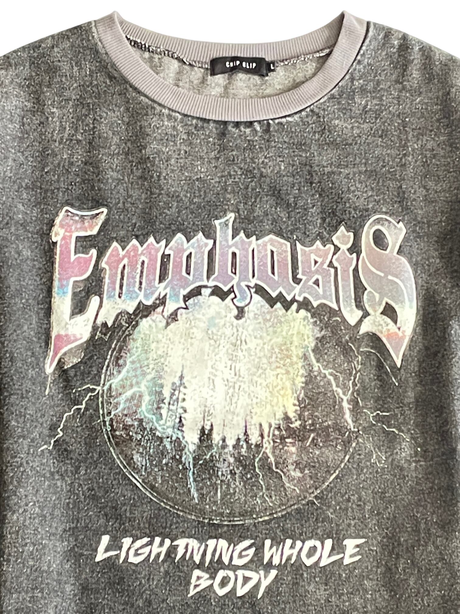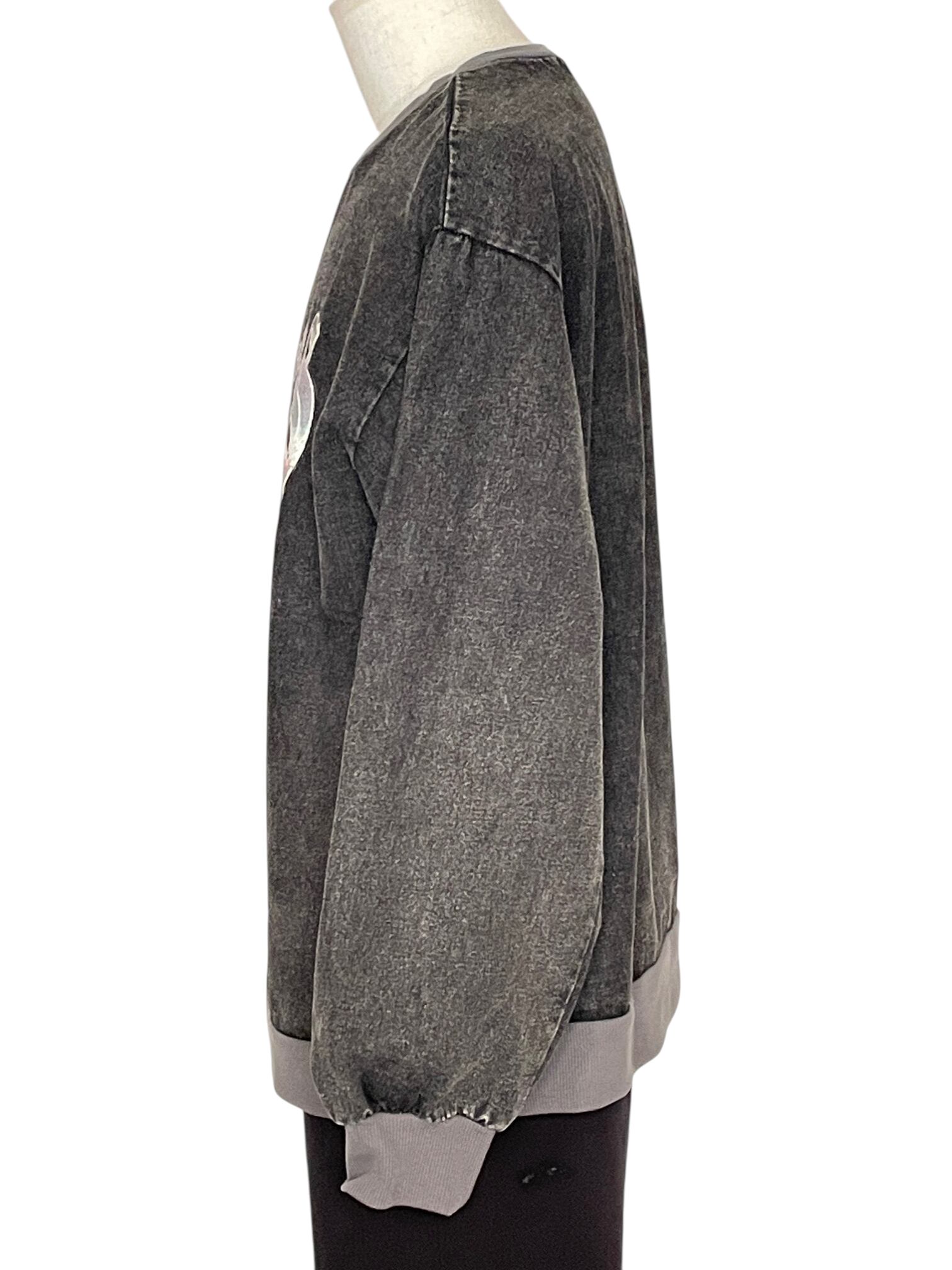 フロントに存在感のあるグラフィックがプリントされたスウェットです。