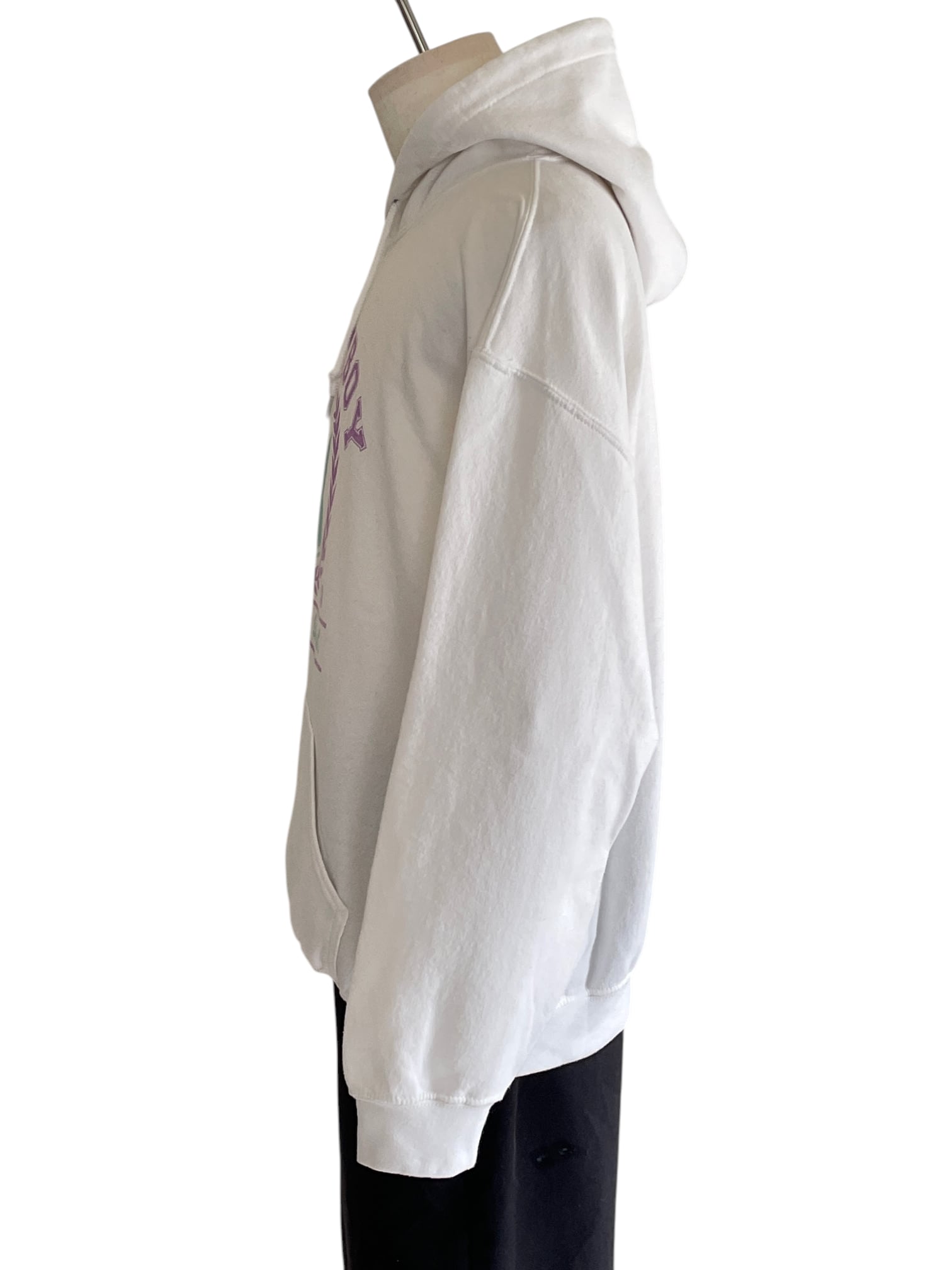 ホワイトボディにやわらかいカラーのロゴデザインが映える一着。
