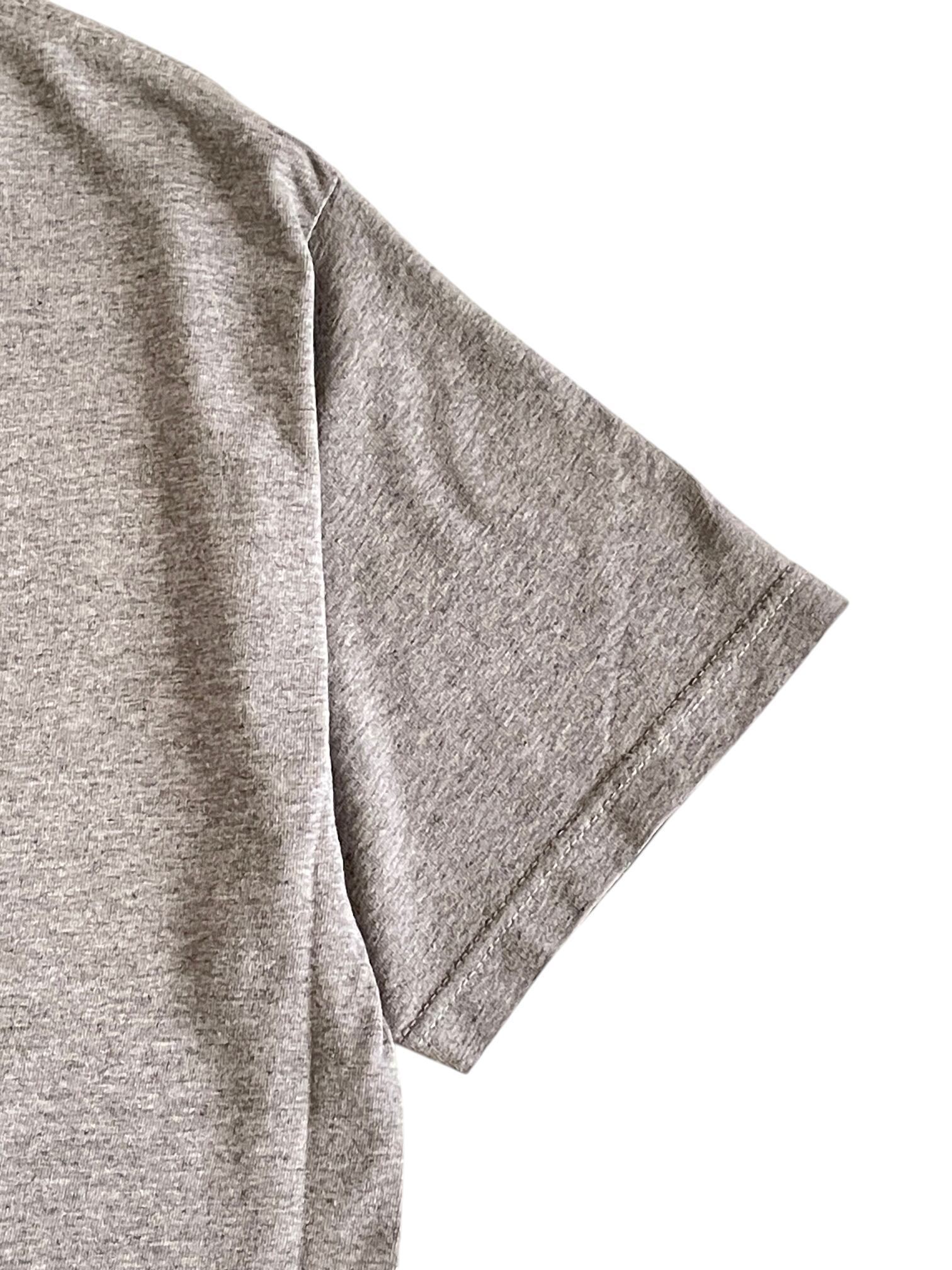 シャツやジャケットのインナーにしてプリントを見せる着こなしにも使えるアイテム。