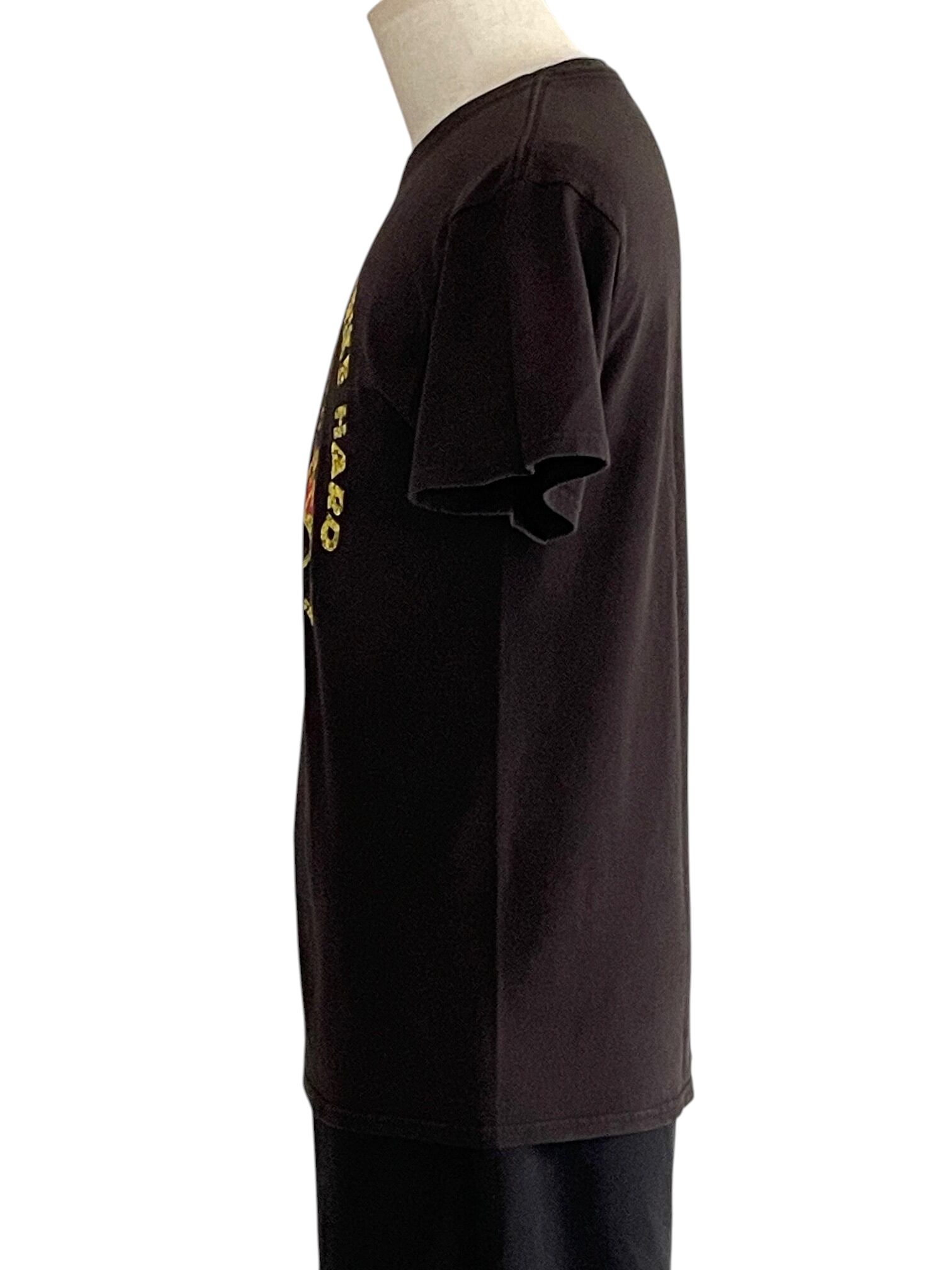 黒のボディにプリントが映えるTシャツです。