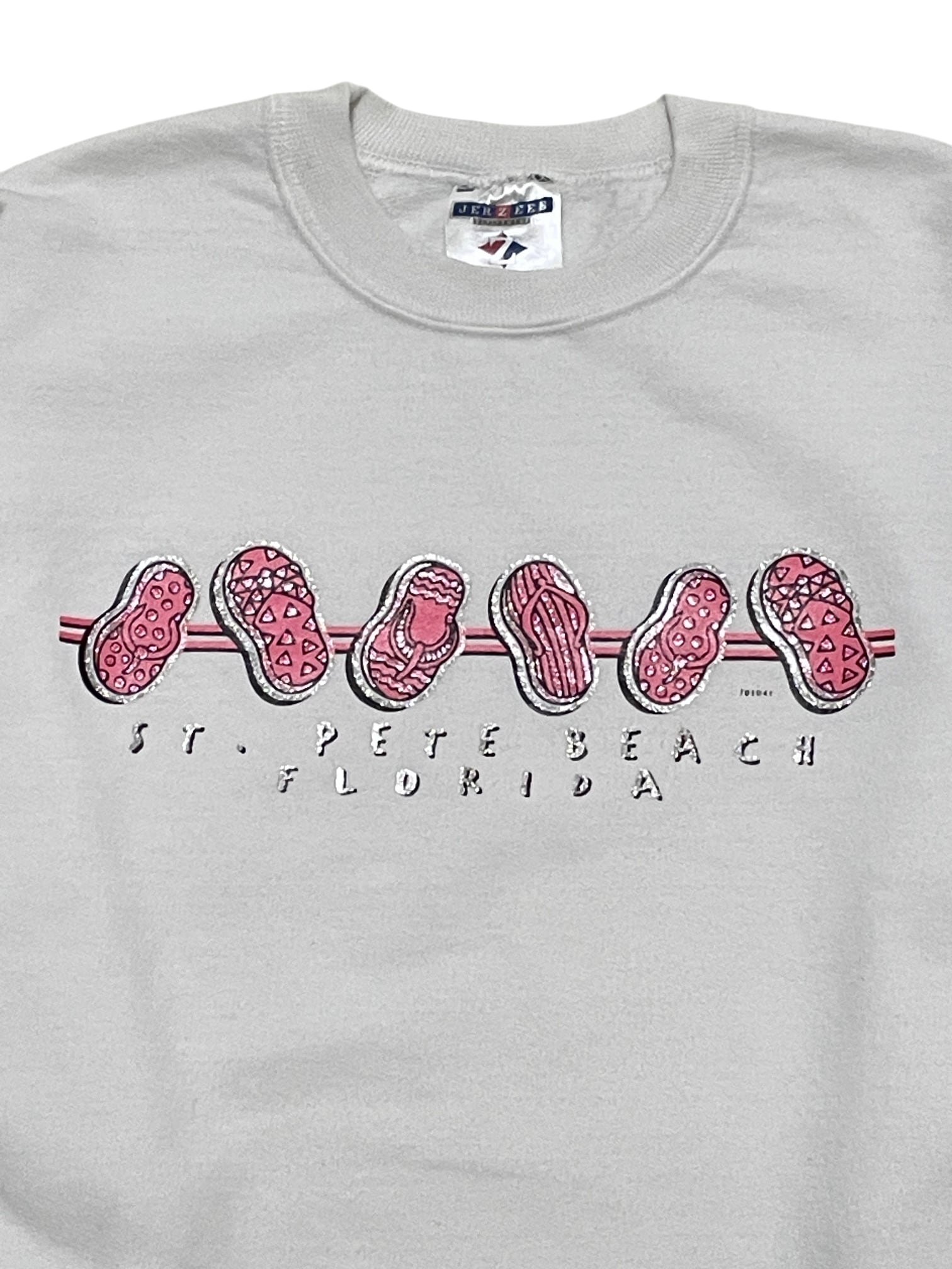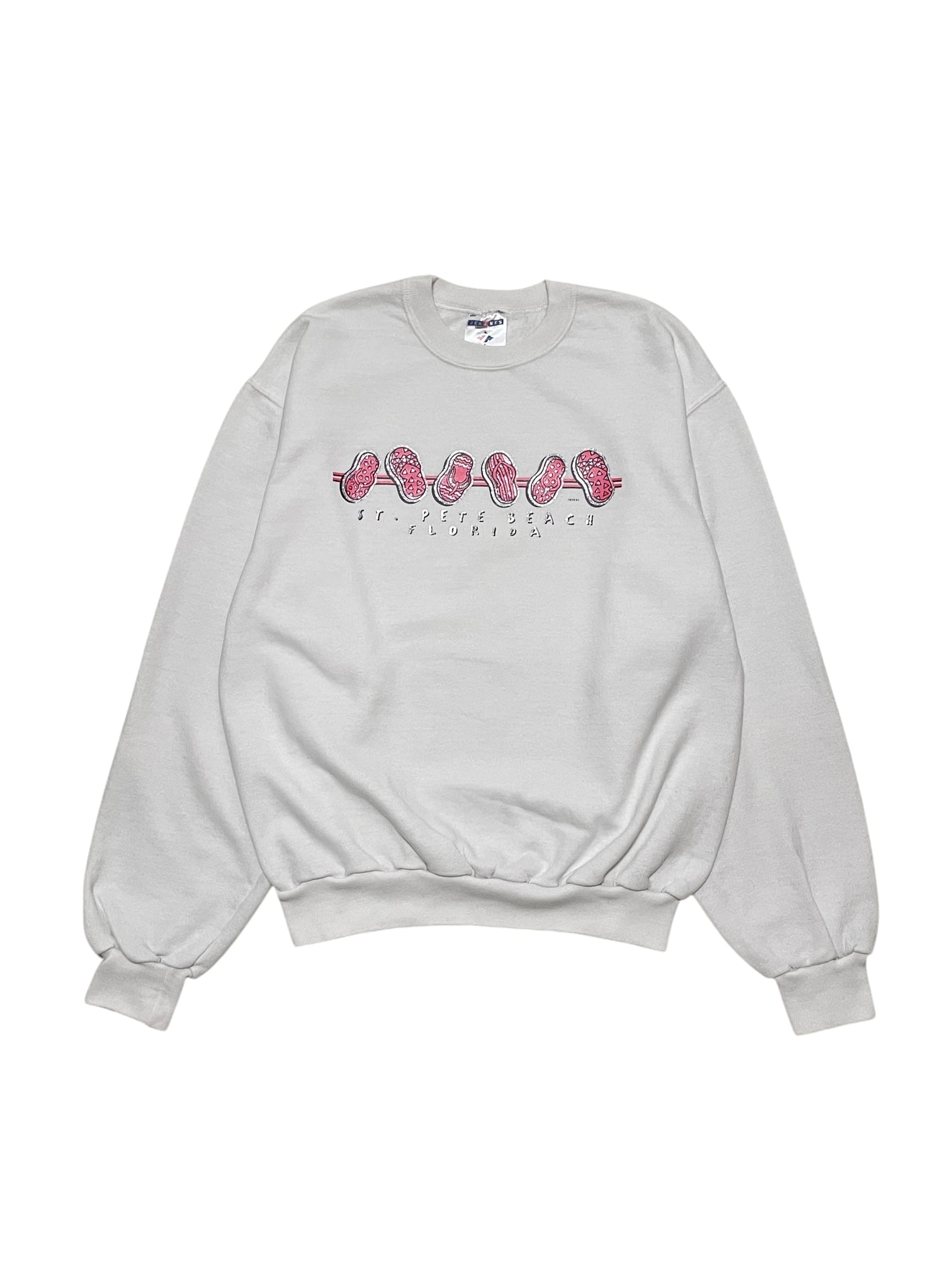 白ボディにビーチサンダルのプリントが入ったJERZEESのスウェットです。